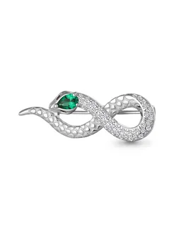 Брошь Змея серебро 925 родированная с изумрудом Символ года