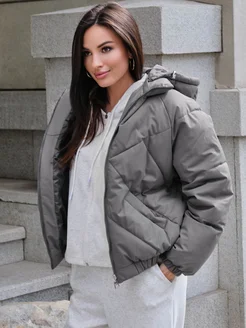 Куртка бомбер осенне зимняя с резинкой и капюшоном