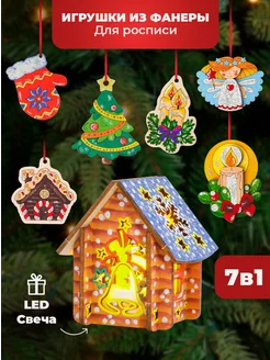 Ёлочные игрушки из дерева роспись домиков на елку 7в1