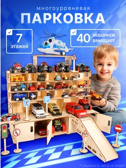 Деревянная парковка для машинок многоуровневый гараж детский