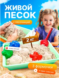 Кинетический кварцевый песок 2 кг с песочницей для лепки