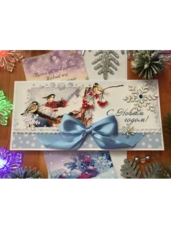 Новогодняя открытка ручной работы (Птички- синички)