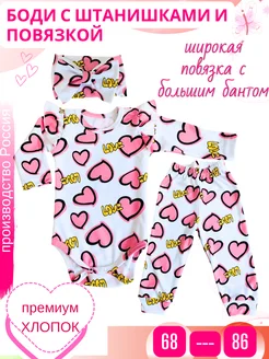 Боди для новорожденных костюм с повязкой штанишками и бантом