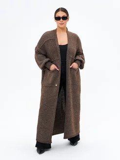 Кардиган длинный оверсайз трикотажный вязаный с поясом