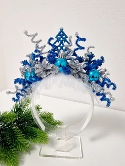 Карнавальный Новогодний ободок. Корона "Елочка и Снежинки"