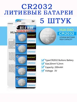 Батарейки CR2032 литиевые дисковые, 5шт, 3V
