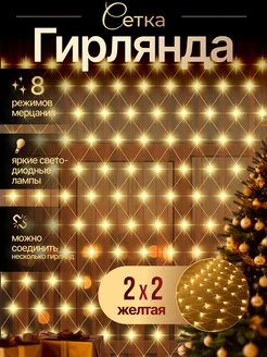 Новогодняя гирлянда на окно сетка желтая 3х2 огоньки яркие