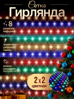 Новогодняя гирлянда на окно сетка цветная 2х2 дождик