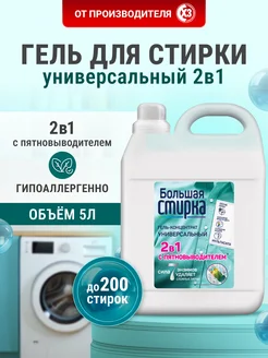 Гель для стирки, порошок жидкий, 2 в 1 против пятен, 5 л