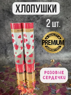 Хлопушка для праздника свадебные Розовые сердечки 2 шт