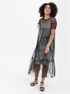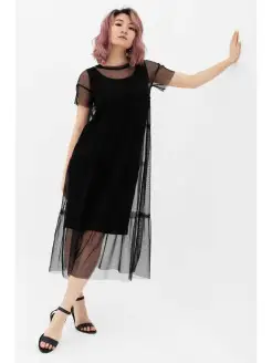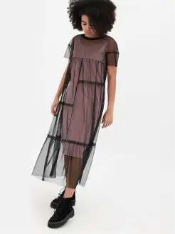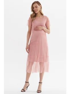 Стильное прямое платье с прозрачными рукавами для беременных