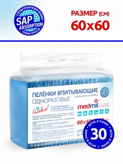 Пеленки с суперабсорбентом одноразовые 60х90см, 30 шт