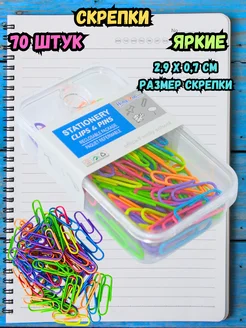 Скрепки канцелярские цветные 70 штук