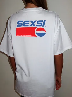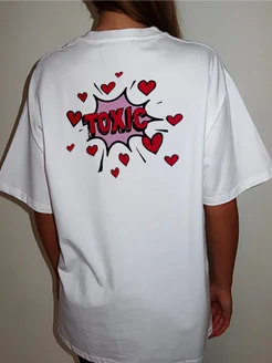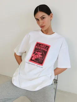 Футболка оверсайз с принтом хлопок со спущенным плечом