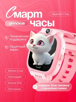 Смарт часы 4G Умные Детские GPS (LBS) розовые