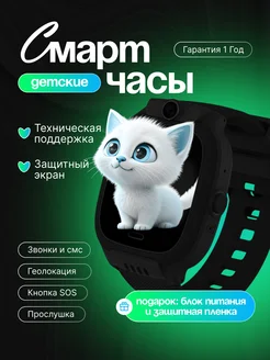 Смарт часы 4G Умные Детские GPS (LBS) черные