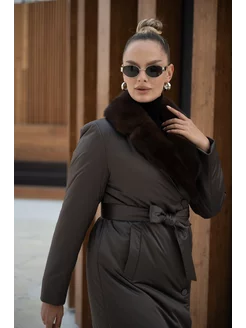 Зимний пуховик с натуральным мехом лисы и капюшоном