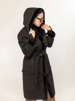 Двусторонняя зимняя дублёнка 2в1 с капюшоном, экомех
