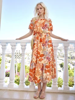 Платье женское летнее пляжное на резинке с открытыми плечами