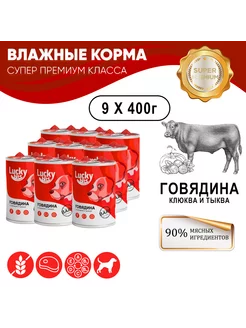 Влажный корм для собак говядина, 9 шт. по 400 гр
