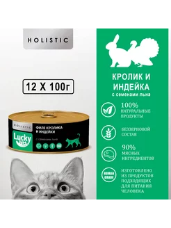Влажный корм для кошек, кролик, индейка, семена льна, 12 шт