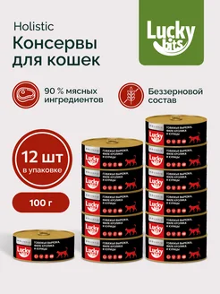 Консервы для кошек говядина, кролик и курица, 100 г х 12 шт