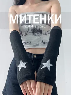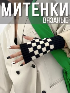 Митенки теплые черно-белые Y2K перчатки без пальцев