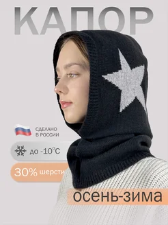 Капор y2k зимний капюшон съемный на кнопке и звезда