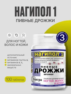 Пивные дрожжи Нагипол 1 для ногтей, волос и кожи, 100табл
