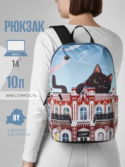 Рюкзак с принтом текстильный, небольшой, с карманами