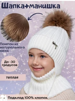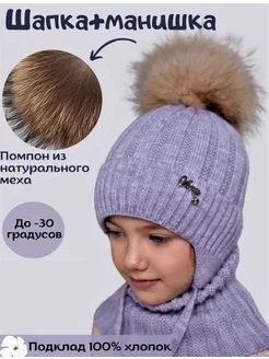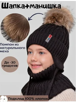 Шапка зимняя вязаная на завязках и снуд для детей