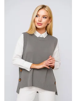 Жилетка вязаная на пуговицах удлиненная школьная