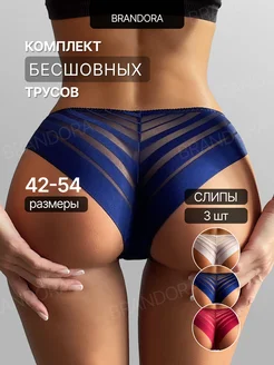 Трусы бесшовные кружевные бразильяна набор 3 штуки