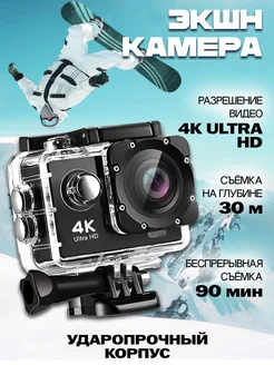 Водонепроницаемая экшн камера 4к с креплениями гоу про