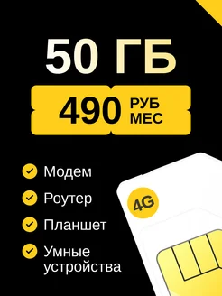 Сим Карта для модема и роутера 50ГБ за 490р в месяц