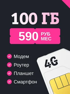 Сим Карта для модема и роутера 100ГБ за 590р в месяц