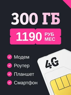 Сим Карта для модема и роутера 300ГБ за 1190р в месяц