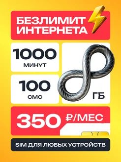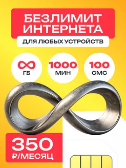 Сим карта Безлимитный интернет 1000 мин, 100 смс - 350 р мес