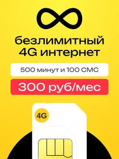 Сим карта Безлимитный интернет 500 мин, 100 смс - 300 р мес
