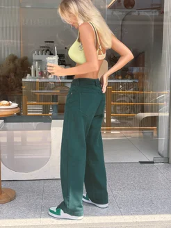 Джинсы широкие трубы с высокой посадкой