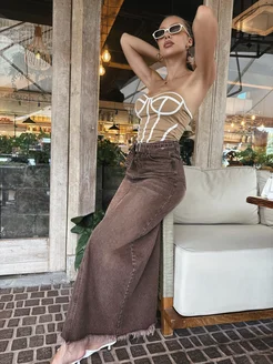 Юбка джинсовая длинная клеш