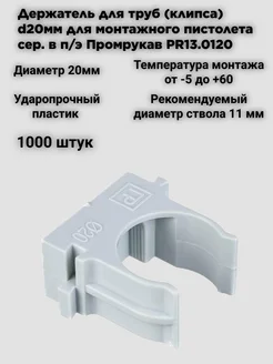 Крепеж-клипса d20мм для монтажного пистолета сер. 1000 шт