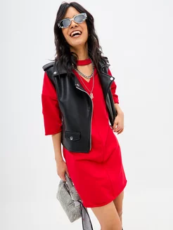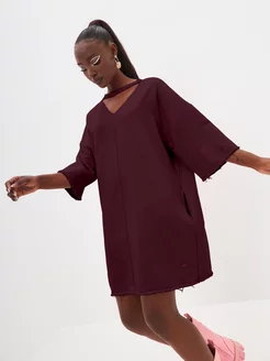 платье-футболка с открытыми плечами oversize хлопок спортшик