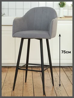Барный стул для кухни мягкий со спинкой серый велюр, 75 см