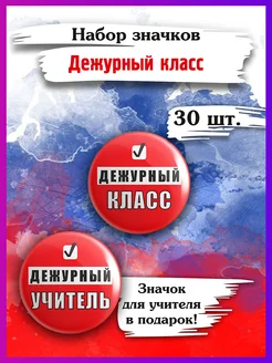 Значки дежурный класс 30шт. и дежурный учитель в подарок