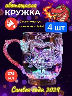 Светящаяся кружка с подсветкой дракон для напитков 4 шт