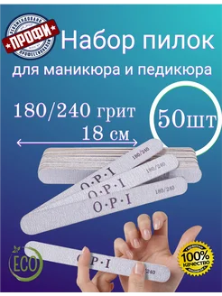 Пилки для маникюра ногтей 180 240 грит 18см набор OPI 50шт