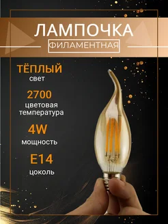 Лампочка накаливания Свеча на ветру Е14 Комплект 4 шт