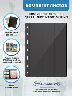 Лист для марок и банкнот 3 ячейки, 10 штук, формат Vario