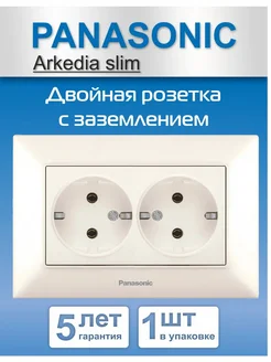 Двойная розетка бежеваяая с заземлением в один подрозетник
